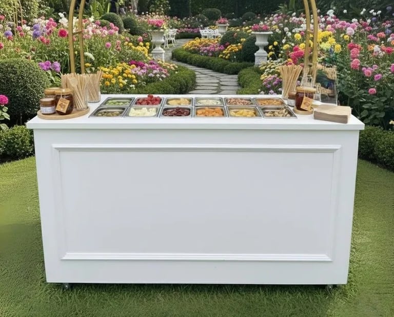 Table et chaises enfants, bar mobile en bois (à crêpes, à cocktails, à bonbons)