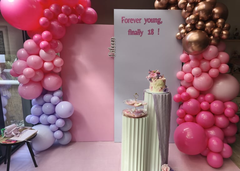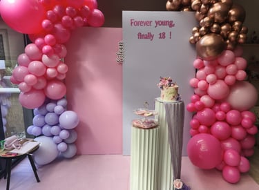 Ambiance festive avec décorations personnalisées pour anniversaires.